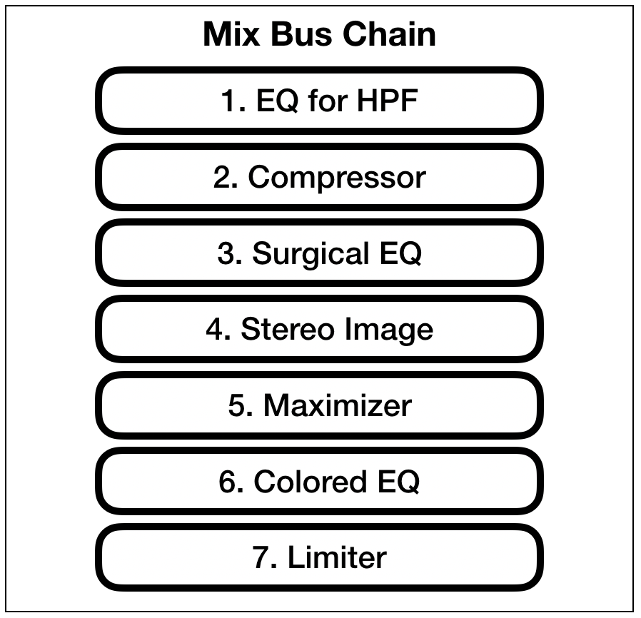 믹스 버스 체인(Mix Bus Chain)에 정답은 없으나 보통 다음과 같은 순서를 생각해 보시기 바랍니다.