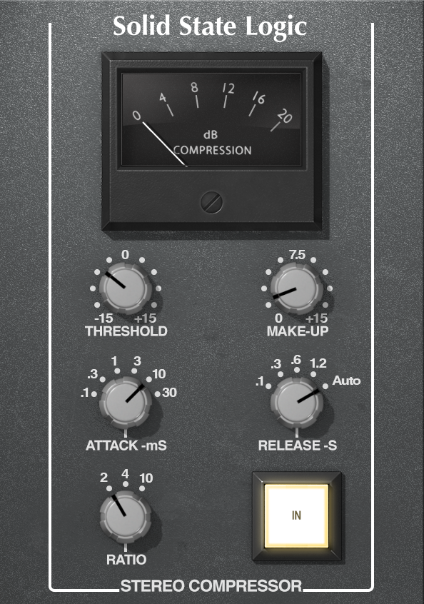 믹스 버스 체인에 사용되는 컴프레서로 SSL G-Compressor가 유명합니다. 우리는 톤을 살짝 일치시키는 목적이므로, Thresold를 잘 조정하여 컴프레서가 살짝 걸치게 만들어주고, 어택은 느리게 릴리즈는 곡의 장르에 따라 빠르게 또는 그보다 살짝 중간 정도로 설정해 줍니다. (위의 예에서는 Auto로 두었습니다.) Ratio도 최소비율로 주는 것이 좋습니다.