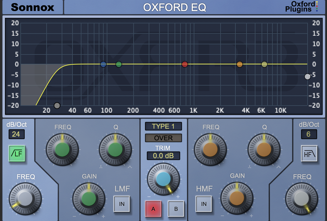 제가 자주 애용하는 Sonnox의 Oxford EQ입니다. 24dB/Oct의 기울기로 깎은 것을 볼 수 있습니다. 익숙한 이퀄라이져를 활용해서 HPF를 적용할 수도 있지만, CPU파워 소모를 줄이기 위해 한가지 기능에 집중된 EQ 플러그인을 활용하는 것도 좋은 방법입니다.