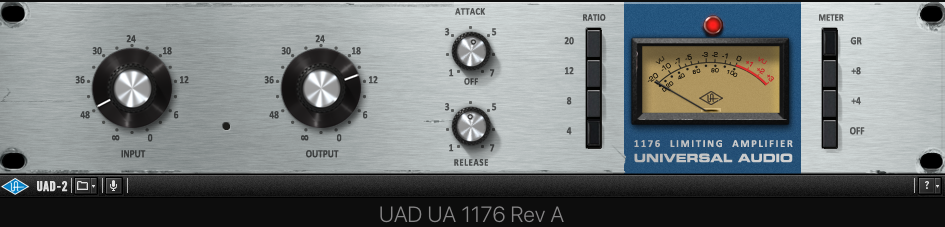 유명한 1176 컴프레서는 여성 보컬 트랙에 적용해도 그 특유의 힘을 발휘합니다. UAD에서 자사의 컴프레서를 에뮬레이션하여 플러그인으로 만들었는데, Rev A는 특히 1967년 모델로 좋은 배음을 추가하면서도 원본의 투명함을 유지합니다. 원천 하드웨어의 살짝 Saturated된 배음을 따라갈 수는 없겠으나, 그 비슷한 소리를 플러그인으로 손쉽게 얻을 수 있어 다행입니다.