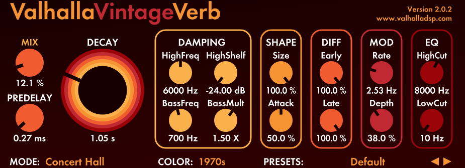 HAAS효과와 별개로 좀 더 인위적으로 보컬 주변의 공간감을 강조하기 위해 리버브를 직접 걸때가 있습니다. 물론 DRY/WET 비율을 잘 적용해야 하며, EchoBoy로 딜레이를 걸때처럼 프리딜레이(Predelay) 시간을 20~30ms로 짧게 가져갑니다. DRY/WET비율은 평균적으로 6~8% 정도로 섞는 편인데, 이번 보컬의 경우 곡의 특성상 10%를 넘기는 정도로 과감하게 설정했습니다.