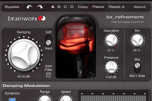 Brainworx의 bx_refinement는 믹스나 마스터의 'Harsh'한 느낌을 제거하기 위해 주로 쓰는 마스터링 플러그인이지만, 보컬의 따뜻함을 강조하기 위해 사용하기도 합니다. 여자보컬의 특성상 고음에서 중고역대가 날카로워질 수 있는데, bx_refinement를 적용해 톤을 해치지 않으면서 날카로움을 다듬을 수 있습니다.