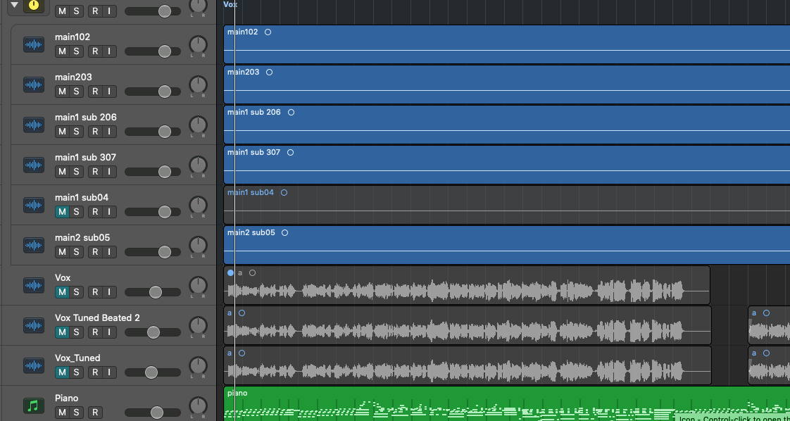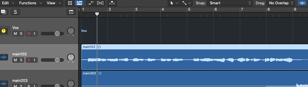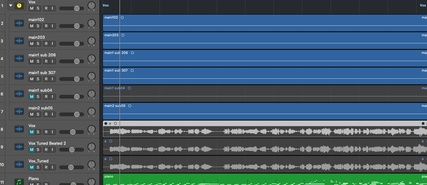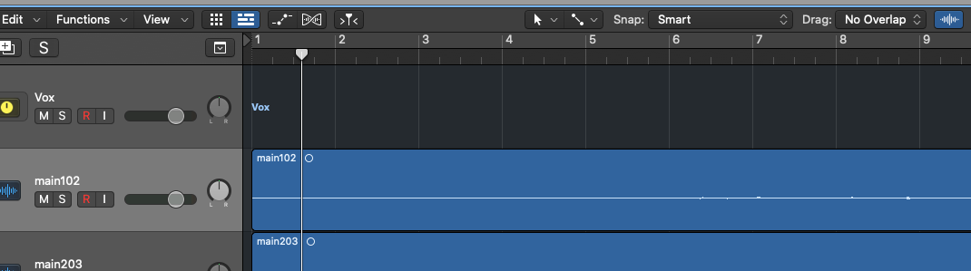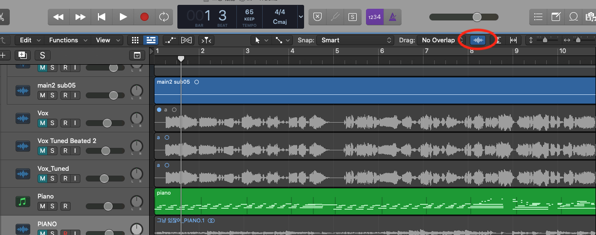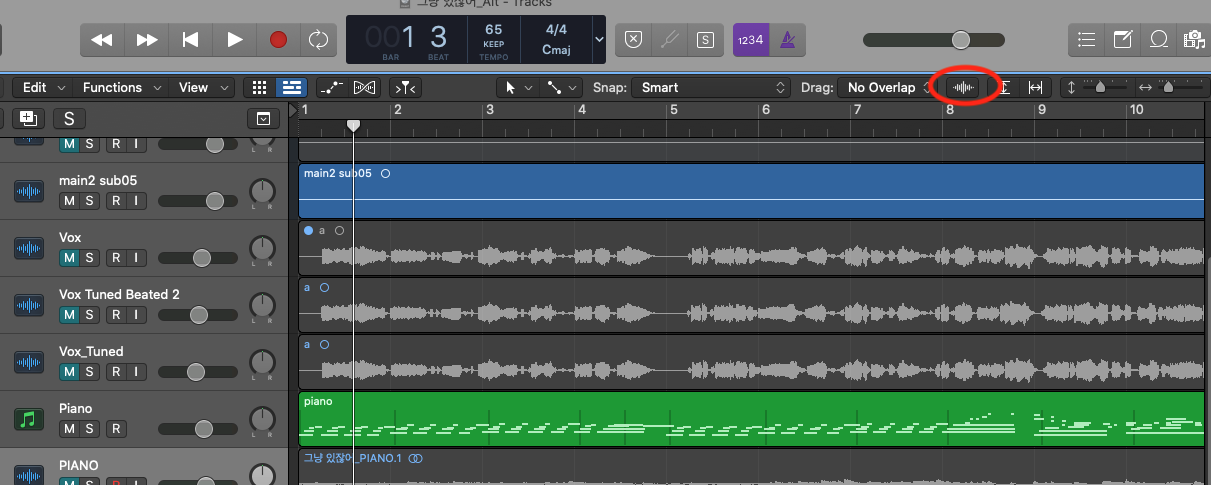 이때, ⌘ + ↓ 를 여러번 클릭하여 트랙의 세로길이를 원하는 길이로 설정하여 작업하고, 다시 줄일 때에는 ⌘ + ↑ 를 여러번 클릭해주면 됩니다.